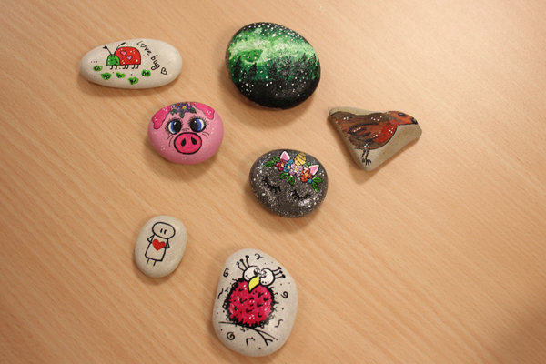 Begonnen hat für Martel alles in Dänemark. Dort fand sie ihren ersten Stein des Projekts „Küstensteine“. „Ich habe mich so darüber gefreut, dass ich schon im Urlaub selbst angefangen habe, selbst Steine zu bemalen. Zurück in Deutschland gründete sie die Facebook-Gruppe und kam mit Almuth Mau in Kontakt. „Das Schöne ist, dass jeder teilhaben kann.“ Der soziale Aspekt der OberbergStones ist inzwischen sehr ausgeprägt. Die Gruppe hat schon Steine für Altenheime, für die Suppenküche oder auch für den ambulanten Hospizdienst bemalt. Der Erlös aus dem Verkauf von zwei Adventskalendern wurde ebenfalls gespendet.