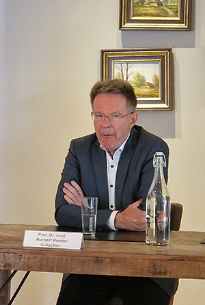 Es handle sich daher noch nicht um einen Umsetzungsbeschluss, sondern um einen Verhandlungsauftrag an die Geschäftsführung für Gespräche mit den zuständigen Ministerien. Geplant sind Investitionen in Höhe von 41 Millionen Euro, darin enthalten sind auch die Erweiterung eines Flügels um zwei Geschosse am Gummersbacher Standort sowie ein Anbau. Vor einer Zustimmung aus Düsseldorf könne dies aber nicht umgesetzt werden. Ausgearbeitet hat die Pläne Prof. Dr. Norbert Roeder (Foto) mit seinem Gutachten. Der 64-jährige Mediziner aus Münster berät seit mehreren Jahren mit zwei Kollegen Krankenhäuser, um diese zukunftsfähig aufzustellen. Das Klinikum Oberberg war bereits Anfang 2021, als das Krankenhausgestaltungsgesetz geändert wurde, auf das Beraterteam zugegangen.