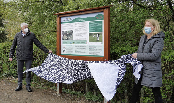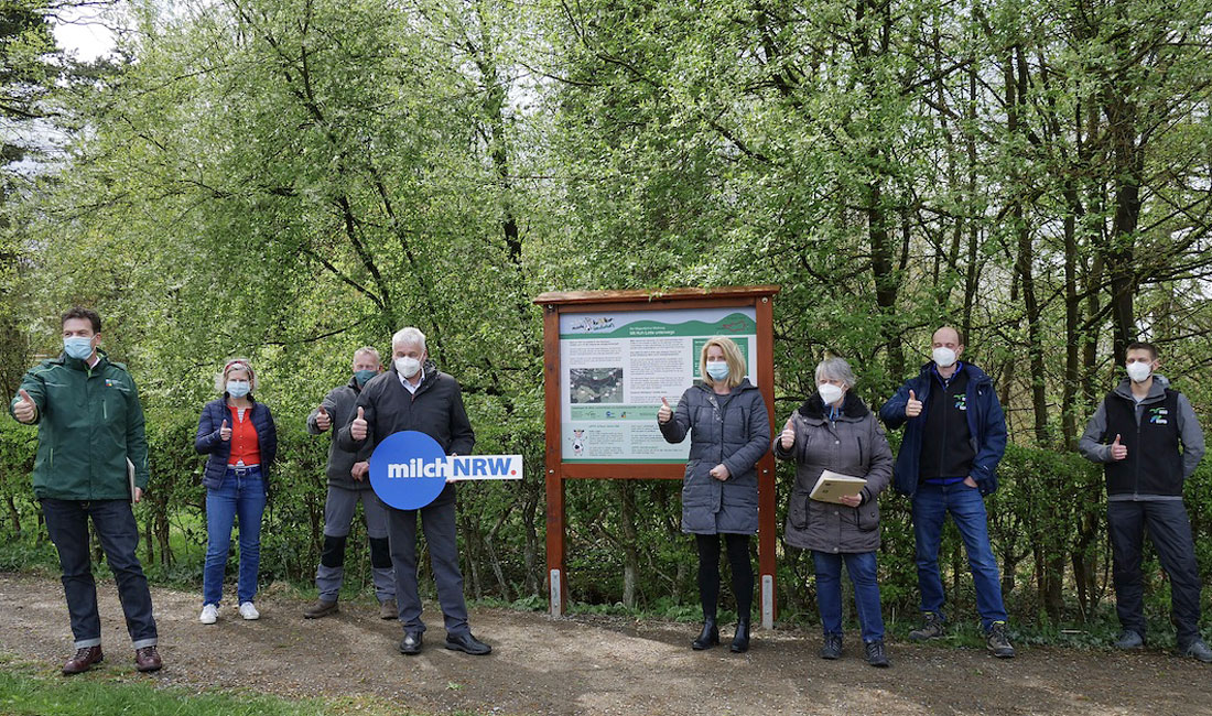 Der geschäftsführende Vorstand der Landesvereinigung der Milchwirtschaft NRW, Hans Stöcker, hat zusammen mit der Wipperfürther Bürgermeisterin Anne Loth die erste der acht inhaltlich und grafisch neu gestalteten Wandertafeln für das Projekt „Milch macht Ku(h)lturlandschaft“ in der Nähe der Jugendherberge enthüllt. Der vier Kilometer lange Wanderweg rund um die milchproduzierenden Betriebe ist familienfreundlich und für alle Altersgruppen geeignet.