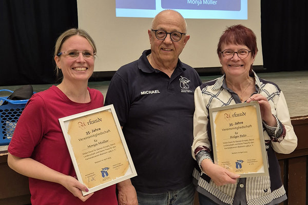 Für 25 Jahre Mitgliedschaft im KVB wurden Uwe Gothow und Uwe Berger ausgezeichnet. 35 Jahre halten Doreen Vollmer, Helga Belo und Monja Müller dem Verein schon die Treue.
