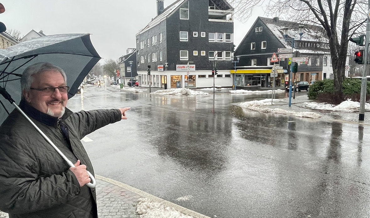 Jene B 256 ist nämlich Kernstück des bevorstehenden Vorhabens, sie wird in großen Teilen von Grund auf saniert. Bis zur Eisenbahnbrücke wird die komplette Straße nebst Kanälen neu aufgebaut, hinter der Schienenquerung bis zur S-Kurve erhält die Fahrbahn auf etwa 100 Metern Länge zudem einen neuen Belag. Schnell wendet sich der Blick des Bürgermeisters nach links auf die Hauptkreuzung. Diese wird spätestens 2023 Geschichte sein und durch einen Kreisverkehr ersetzt werden. „Dieser wird so groß sein, dass Lkw ihn problemlos befahren können“, ist Meisenberg überzeugt. Deswegen plant die Verwaltung einen Bürgerwettbewerb, bei dem Vorschläge zur Gestaltung der Mitte eingereicht werden. „Dazu gibt es in den kommenden Wochen nähere Informationen“, will Meisenberg noch nicht allzu viel verraten. Zudem werden die Einmündungen von Leppe- und Klosterstraße erneuert.