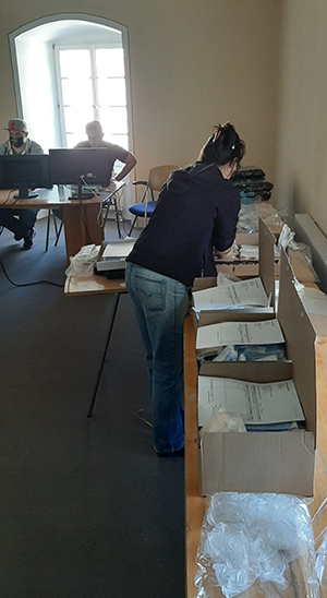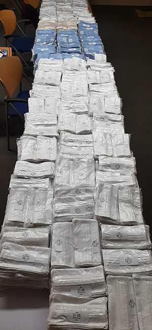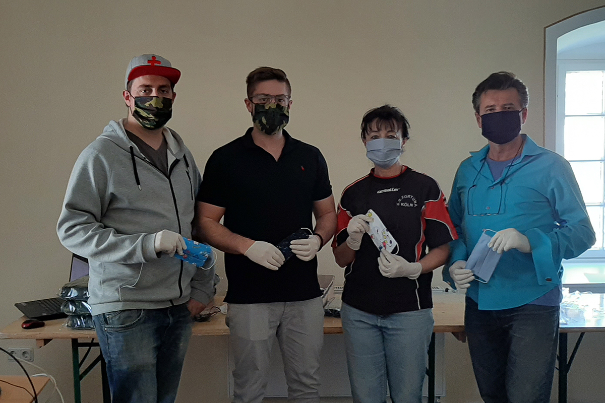 „Ohne meine drei Söhne und die vielen weiteren Helfer, die uns beim Verpacken helfen, wäre das nicht zu stemmen. Das hat uns auch als Familie weiter zusammengeschweißt“, so Scharn, schließlich werden pro Tüte nur drei Masken verpackt. Um die Logistik aufrechterhalten zu können, stellte Jörg Deselares, Kurator des Schloss Ehreshoven, sogar weitere Räumlichkeiten zur Verfügung.