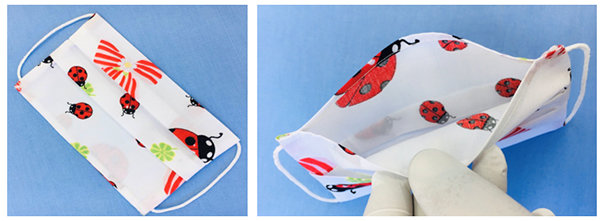 [Auch für Kinder gibt es ein Modell. Wichtig ist, dass die Schutzmasken, doppellagig mit einer Innenlasche sind, sodass eine Membran zur Sicherheit eingesetzt werden kann.]