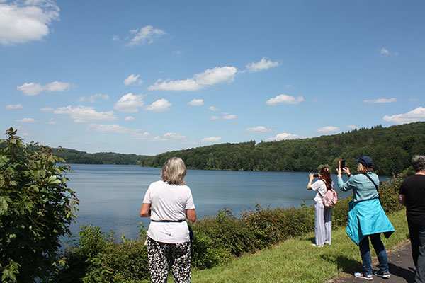 Im Entnahmeturm informierte der Talsperren-Meister über geschichtliche Hintergründe, hydrologische Eckdaten, sowie Sinn und Zweck des Turmbauwerks. Nach 250 Stufen abwärts ging es dann Hunderte Meter entlang der zwei mächtigen Betonkanäle, durch die das Tiefenwasser dem Wasserwerk zur Aufbereitung zugeführt wird. Beim gut einstündigen Rundgang ließ Ingenieur Hubertus Hauschke die Gruppe teilhaben an seiner Begeisterung zum Thema Trinkwasseraufbereitung und umriss anschaulich die komplexe „Wasserwelt des Wasserwerks“.