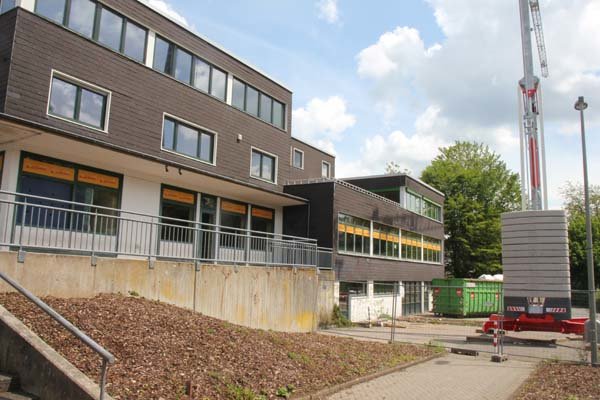 [Gut voran kommen die Arbeiter auf der Baustelle an der Grundschule.]