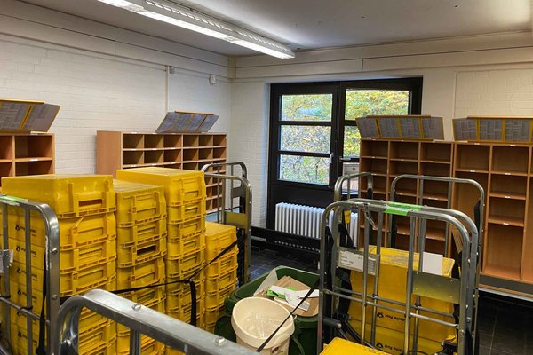 [Eng geworden war es im Bereich, wo die Pakete bisher zwischengelagert wurden.]