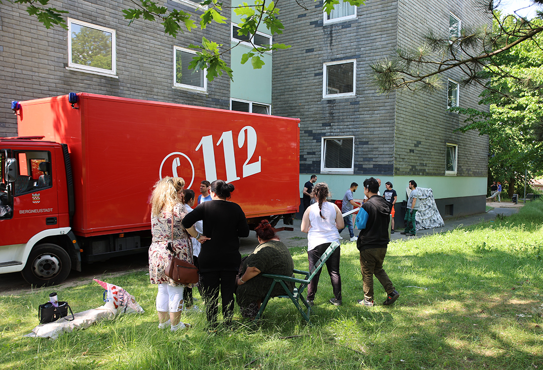 Das Mehrfamilienhaus in der Danziger Straße 10a in Bergneustadt ist von gestern Abend an bis zum heutigen Mittag komplett geräumt worden. 28 Menschen mussten innerhalb kürzester Zeit ihre Sachen packen, die meisten Möbel blieben zurück. Angeordnet wurde die Räumung vom Oberbergischen Kreis. Bei einer Begehung von Wohnhäusern in Hackenberg, auf Veranlassung des NRW-Ministeriums für Heimat, Kommunales, Bau und Digitalisierung, wurden bei insgesamt drei Gebäudekomplexen erhebliche Brandschutzmängel festgestellt. An der Begehung am 6. Juni hatte auch die Brandschutzdienststelle des Oberbergischen Kreises teilgenommen. Gestern lag dann der Bericht vor, der die Beteiligten umgehend zum Handeln zwang und die Räumung veranlasst wurde. Bei den anderen beiden Objekten in der Straße „Zur Nordhelle“ können die insgesamt rund 150 Bewohner zunächst in den Häusern bleiben.
