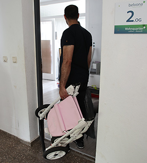 Mit tatkräftiger Unterstützung des Bauhofs und weiteren Angestellten der Stadt wurden Transporter und andere Fahrzeuge mit dem Hab und Gut der Menschen beladen. Alle sechs Familien wurden auf die Schnelle untergebracht. Vier von ihnen sind nun in von der Stadt angemieteten Wohnungen. Zwei Familien kamen zunächst privat unter. In den städtischen Wohnungen können die Familien bleiben, bis eine dauerhafte Lösung gefunden wurde, sagt Bürgermeister Thul.