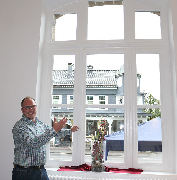 Im Zuge des Städtebauförderprogramms „Soziale Integration im Quartier“ wurde das unter Denkmalschutz stehende Gebäude komplett saniert. Über die technischen Details gab Florian Stausberg vom Gebäudemanagement der Gemeinde Auskunft. „Wir haben das Gebäude komplett entkernt, Grundrisse wurden verändert, es wurden Schadstoffsanierungen durchgeführt, Elektrik und Heizung wurden installiert sowie die Böden neugestaltet“, erklärte Stausberg. „Hier ist kein Stein auf dem anderen geblieben, aber wir haben versucht, im Sinne des Denkmalschutzes möglichst viel Bausubstanz zu erhalten und den Charakter des Gebäudes zu wahren“, so der Bauingenieur. Die Fenster von 1890 wurden vom Schreiner aufgearbeitet, mit Isolierglas versehen und wieder eingesetzt. Das Dach ist allerdings komplett neu.