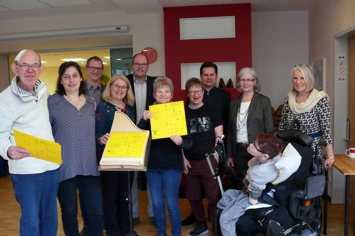 Gemeinsames Singen und Musizieren stehen ganz weit oben auf der Wunschliste der Freizeitbeschäftigungen der 36 Bewohner des Hauses "Am Konradsberg", Wohnhaus der "HBW Haus für Menschen mit Behinderung". Aus diesem Grund ist die Freude in der Wohngemeinschaft derzeit besonders groß, denn durch Förderung der Bürgerstiftung Wiehler Kulturgüter wurde die Anschaffung einer Veeh-Harfe ermöglicht.