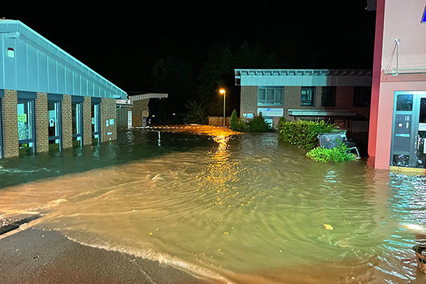 Architekt Ralf Rother erinnerte sich im Rahmen der Veranstaltung noch einmal an die Tage im Juli. „Um 12:50 Uhr war der Regen noch nicht so extrem.“ Das änderte sich im Laufe des 14. Juli. „Um 20 Uhr hatte sich die Lage zugespitzt. Wir hatten Sandsäcke organsiert, ich hatte auch schon eine Trocknungsfirma kontaktiert für den nächsten Tag.“ Dass er diese zumindest für das Ärztehaus nicht benötigen würde, ahnte er noch nicht. „Um 22:50 Uhr wurde die Situation dramatisch. Im Gebäude zeigten sich drinnen überall Risse, es knackte links und rechts. Ich habe nur noch alle raus beordert, ich habe das Gebäude als letzter verlassen.“ Zehn Minuten später brach das Gebäude weg.