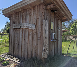 „Die beiden Höckergänse sind äußerst wachsam, clever und mutig. Sie unterstützen die vier Hähne beim Aufpassen“, erklärt der junge Biobauer. Laut schnatternd sorgen sie dafür, dass Füchse und anderes Raubwild die Flucht ergreifen, und Habichte die Hühner-Schar nicht minimieren. Die Wachhunde mit Flügeln scheinen an ihrem Aufpasserjob wahre Freude zu haben. Auch zu Corona-Zeiten kann man die Eier oder andere Produkte des Biohofes im „ Leechtermejer Eierhüüschen“ (Bild) erwerben. 24 Stunden sind die Käufer dort willkommen und können sich jederzeit im Eierhäuschen bedienen. Und so geht's: Hände draußen desinfizieren, Abstand halten, einzeln eintreten, Eier oder sonstige Leckereien auswählen, bezahlen,Türe schließen und die Produkte zuhause genießen.