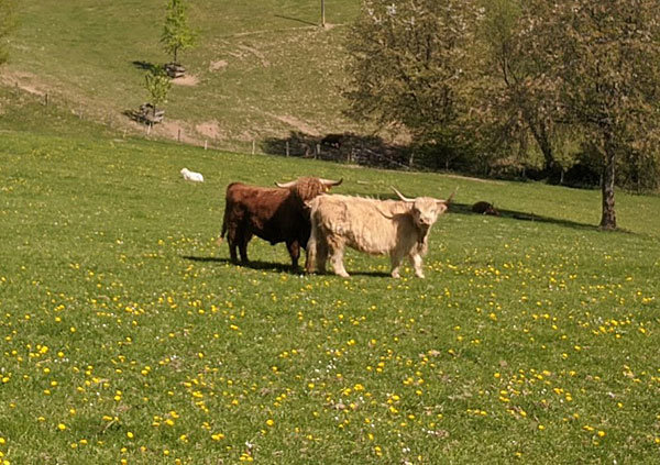 [Die schottischen Hochlandrinder „Highland Cattle vom Frankenthal“.]