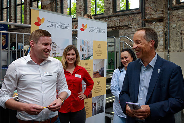 Waldemar Metzger hofft ebenfalls, auf diesem Wege „Azubis und gute motivierte Mitarbeiter zu finden, die auch mal über den Tellerrand schauen“. Der Geschäftsführer des Senioren- und Pflegezentrums Lichtenberg sucht aktuell Pflegeassistenten und Fachleute.