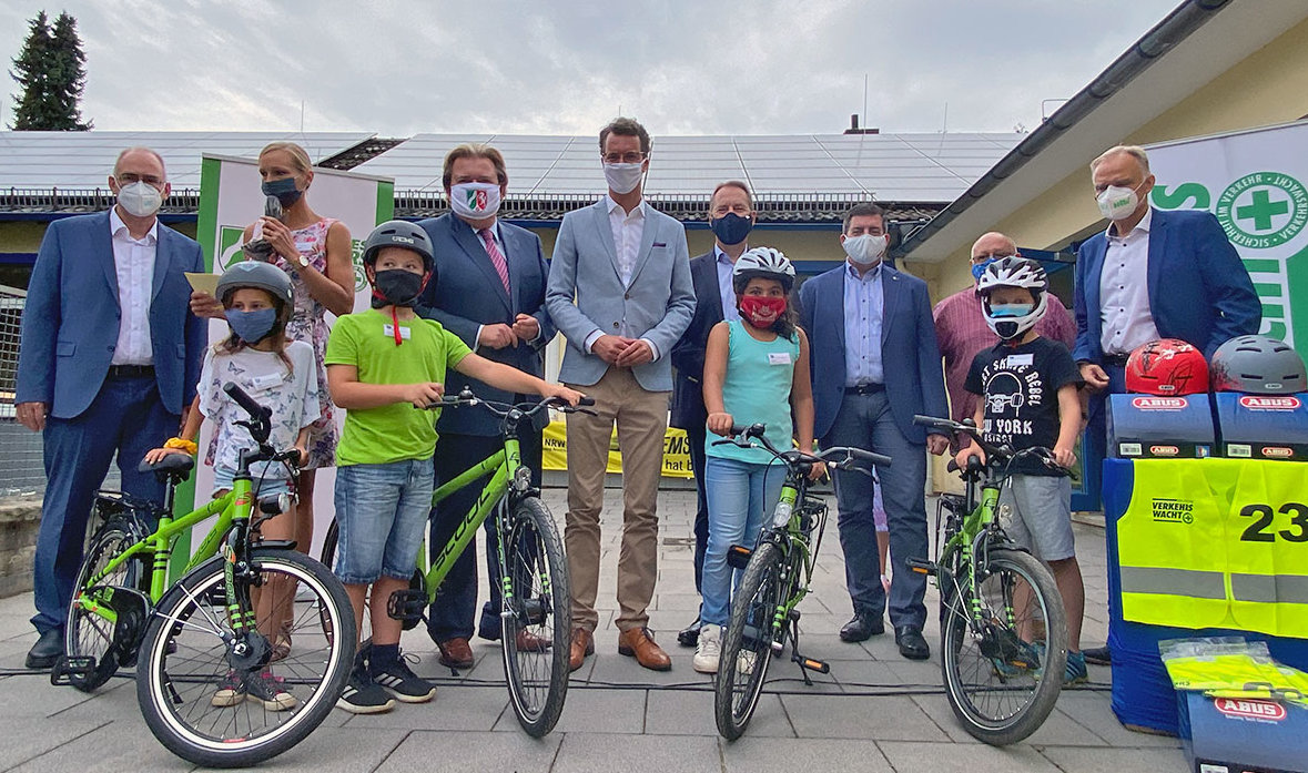 Gummersbach – NRW-Verkehrsminister Hendrik Wüst übergab heute Morgen an der Grundschule Windhagen Fahrräder, Helme und Signalwesten zur Fahrradausbildung.