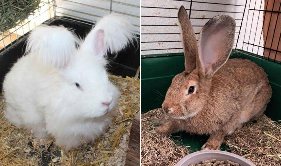 Stellvertretend für die 30 Kaninchen, die das Tierheim Koppelweide in Wiehl beherbergt und vermitteln möchte, stehen der Deutsche Riese "Mario" und die Angora-Dame "Puschel".