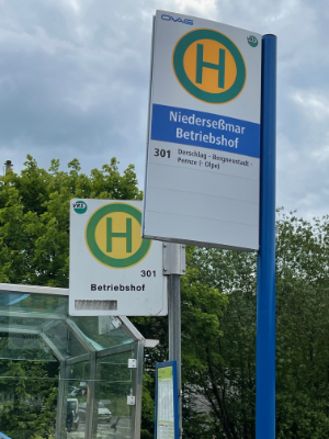 [Die Schilder am Betriebshof in Niederseßmar wurden zuerst angebracht. Im Hintergrund die alte Version.]