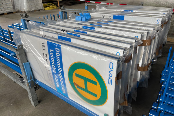 Die Gespräche seien bisher problemlos verlaufen, vielerorts haben die Erdarbeiten für die Installation der neuen Masten bereits begonnen. Auf den neuen Schildern wird nicht nur die Liniennummer, sondern auch der Verlauf zu lesen sein. Mögliche Änderungen sind dank austauschbarer Elemente kurzfristig durchführbar. Außerdem werden die Fahrplaninformationen erneuert, das Format wird auf DIN A3 vergrößert.