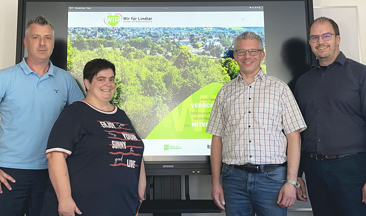 Foto: Mischa Kolpacki --- (v.l.) Mischa Kolpacki, Monique Rohr, Sven Engelmann und Andreas Böhm freuen sich über die neue Website des Vereins „Wir für Lindlar“.
