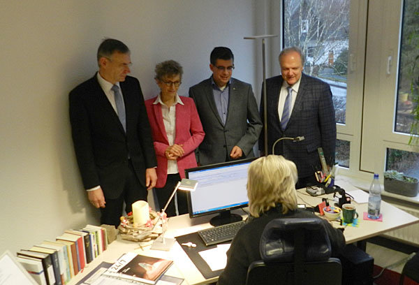 [(v. li.) Diakoniepfarrer Thomas Ruffler, Christa Dresbach-Schnieder, Leiterin der Evangelischen Telefonseelsorge, Bürgermeister Frank Helmenstein und Superintendent Jürgen Knabe ließen sich über die Arbeit der Seelsorge-Mitarbeiter informieren.]