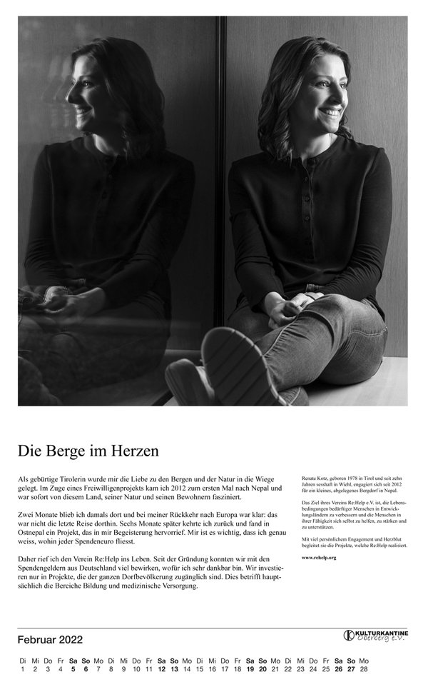 Fotograf Ingo Winkelströter hat die abgebildeten Personen in Schwarz-Weiß-Portraits festgehalten. Die Textbeiträge wurden von den Portraitierten selbst gestaltet. Büscher ist es ein besonderes Anliegen, unterschiedliche Menschen zur Sprache kommen zu lassen sowie Lebensgeschichten, Erfahrungen und auch Meinungen „zu konservieren“. Während sich die Kulturkantine dabei anfänglich auf das Produzieren von Videos fokussierte, entstand im vergangenen Jahr die Idee, einen Heimatkalender zu gestalten. „Das Echo war durchweg positiv und hat uns darin bestärkt, eine zweite Auflage herauszubringen“, so Büscher.