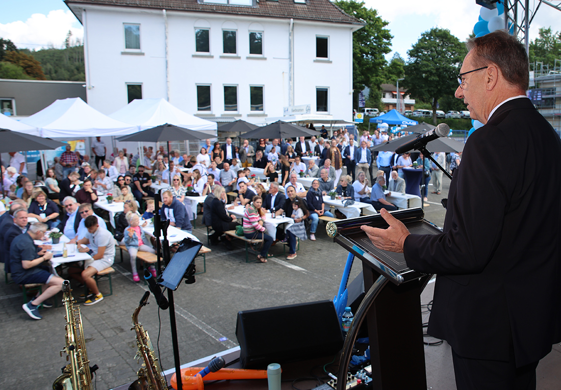 Als unbedingter „OVAG-Fan“ outete sich Gummersbachs Bürgermeister Frank Helmenstein und dankte für eine „riesengroße Erfolgsgeschichte“, die das Verdienst aller Ehemaligen, der Aktiven und eines leistungsfähigen Back-up-Bereichs seien. Da die Attraktivität der Oberbergischen Region entscheidend von einem gut verzahnten Mobilitätskonzept abhänge, gelte es, die Zusammenarbeit von ÖPNV, On-Demand-Angeboten, der Bahn und dem E-Car-Sharing zu vervollkommnen. Diesen dynamischen Prozess wolle man wohlwollend begleiten, sicherte der Rathauschef zu.