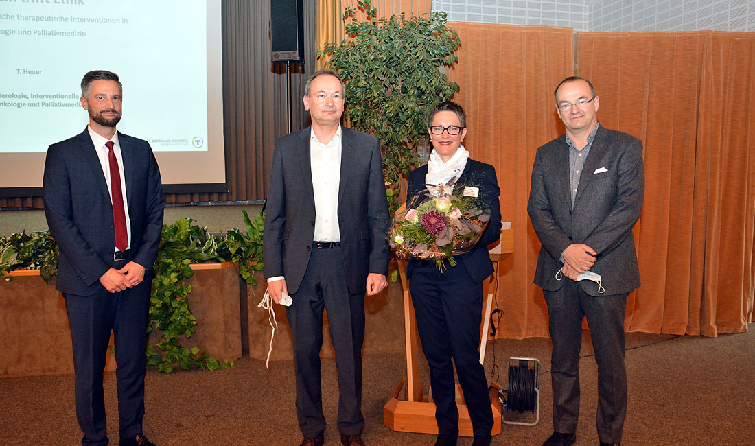 Im Rahmen einer Fortbildungsveranstaltung hatte sich Dr. Becker den niedergelassenen Kollegen nun vorgestellt. Im Gepäck hat die angehende Medizinethikerin viele Ideen: „Ich freue mich darauf, meine Erfahrungen einzubringen, Innovationen und Visionen zu etablieren.“ Im Fokus hat sie dabei die Idee, ein Palliativzentrum aufzubauen. „Es ist mir wichtig, die ‚early integration‘ zu stärken und früh zu implementieren“. Unter „early integration“ versteht man die frühzeitige Integration palliativmedizinischer Versorgung in die onkologische Therapie. Sascha Klein, Geschäftsführer des Klinikum Oberberg, erklärte: „Angesichts des ausgezeichneten Rufs, der Ihnen vorauseilt, wissen wir unsere Patienten bei Ihnen in den allerbesten Händen.“ Und auch der Ärztliche Direktor des Kreiskrankenhauses, PD Dr. med. Michael Petzsch, freute sich auf die Zusammenarbeit mit Becker und wünscht sich „den erfolgreichen Weg der Klinik mit Frau Dr. Becker fortsetzen zu können“.