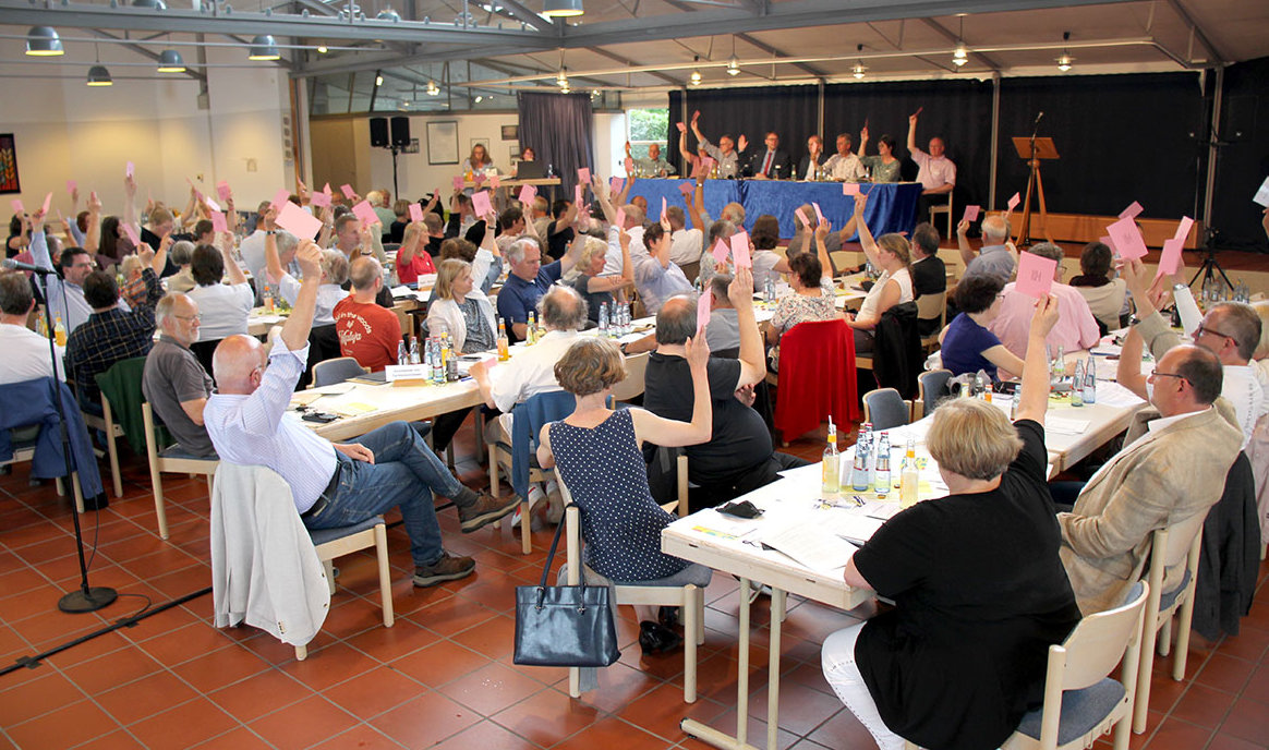 Monatelang und in intensiven Diskussionen hatte eine 57-köpfige Arbeitsgruppe mit Vertretern sämtlicher Gemeinden und des Kreissynodalvorstands im evangelischen Kirchenkreis An der Agger um Lösungen gerungen. Mitte März legte die AG schließlich eine fertige Beschlussvorlage vor. Der Inhalt: Die Pfarrstellenkonzeption 2030, mit der der Kirchenkreis es schaffen möchte, ihrem Auftrag als Kirche und den Erwartungen der Gläubigen gerecht zu werden, obwohl der Kirchenkreis ab 2030 laut Landeskirchen-Vorgabe mit einem Drittel weniger Pfarrerinnen und Pfarrer (dann 26 Stellen) auskommen muss – auch eine Folge des Umstands, dass zu wenig Fachkräfte nachkommen (OA berichtete). Die Sommersynode des Kirchenkreises im Oberwiehler Gemeindehaus hat heute gezeigt, dass sich zumindest die aufwendige Vorarbeit schon einmal gelohnt hat. Die Pfarrstellenkonzeption 2030, laut Superintendent Michael Braun die „größte und tiefgreifendste Veränderung des kirchlichen Lebens im Kirchenkreis“ ist von der Synode mit großer Mehrheit beschlossen worden.