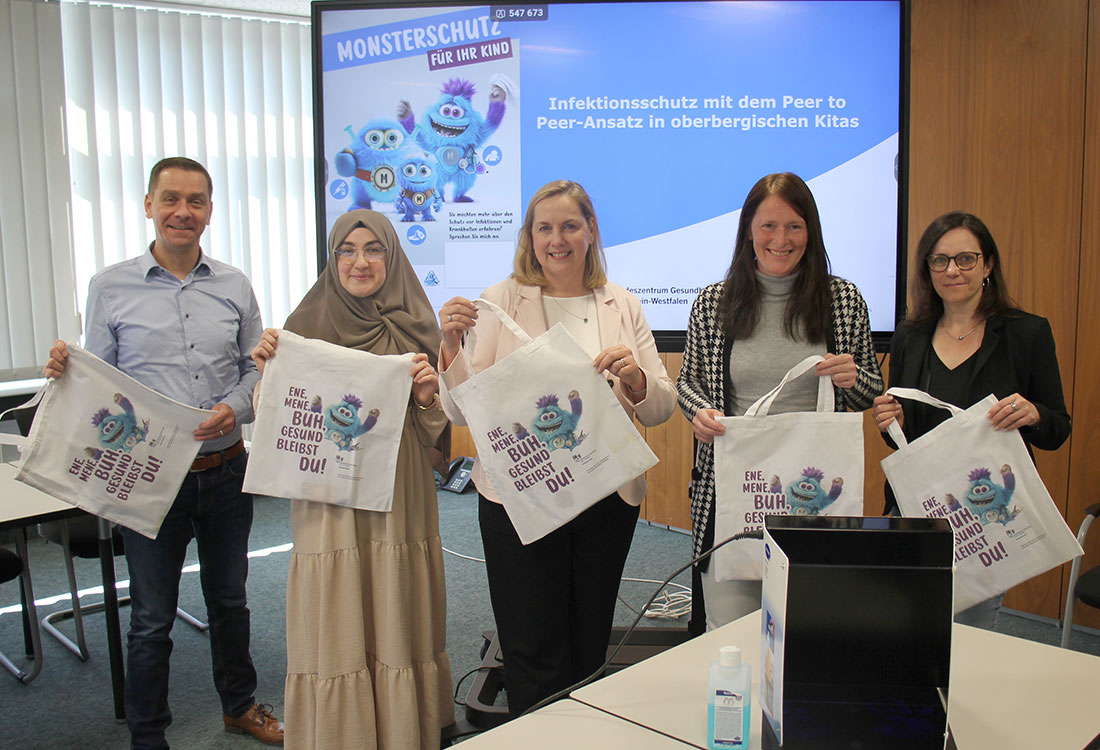 Das Infektionsschutzprogramm des Kreisgesundheitsamts an Kitas wird fortgeführt. Die Pilotphase in den vergangenen rund anderthalb Jahren sei ein voller Erfolg gewesen, sagte Gesundheitsamtschefin Kaija Elvermann heute bei einem Pressegespräch. Die Ursprünge hat das Programm noch in Ereignissen vor der Pandemie, nämlich einem Masernausbruch im Kreis, und den hohen Corona-Infektionszahlen im Kreis. Es wurde festgestellt: Es gibt einige Sozialräume im Oberbergischen, in denen gesundheitliche Kompetenzen, hygienisches Wissen und die Impfbereitschaft aufgrund verschiedener Faktoren – sei es Herkunft, Religion, Bildung oder Einstellung – gering sind und das Ausbruchsgeschehen beeinflussen. Das Programm sollte nun helfen, dies zu verbessern (OA berichtete). Der besondere Ansatz: Dies sollte auf Augenhöhe von Peer-to-peer geschehen. Ein Ansatz, der nicht nur eine Förderung durch das Landeszentrum für Gesundheit NRW über 85.000 Euro nach sich zog, sondern auch sehr erfolgreich war, so Elvermann.