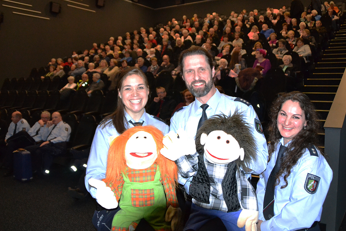Ehe es um 15 Uhr „Film ab“ heißt, werden zunächst einmal die drei Handpuppen Martin, Lukas und Lucy, "die pfiffigen Enkel" zu den Hauptdarstellern auf der Leinwand. Mit selbstgedrehten Videos der Polizei berichten diese ihren Großeltern von ihren Erlebnissen und teasern damit die Themen des Tages an. „Wir wollen Sie nicht belehren – denn dafür haben sie viel zu viel Lebenserfahrung – sondern Ihnen Denkanstöße geben“, sagte Oberkommissarin Daniela Kindel heute bei der Auftaktveranstaltung, bei der die Polizei das Programm der kommenden Monate vorstellte.