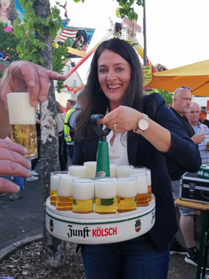 [Nach dem Fassanstich mischte sich Larissa Weber mit dem Freibier unter die Besucher.]