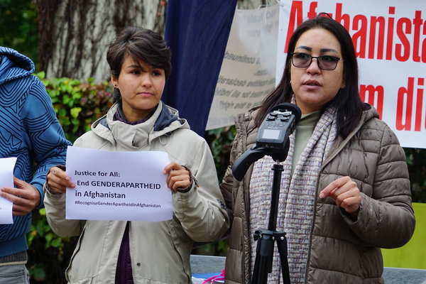 Ende September hat Tamana auf dem Wipperfürther Hausmannsplatz ein Protestcamp aufgeschlagen. Ein Pavillon und ein kleines Zelt boten etwas Schutz, mit Bildern und Plakaten machte sie deutlich, worum es bei ihrer Aktion geht, möchte, dass trotz all der Krisen in der Welt, die Frauen in ihrer Heimat nicht vergessen werden. Tamana spricht von „Gender Apartheid“, von Folter und Vergewaltigung, davon, dass auch junge Frauen zwangsverheiratet werden. „Die Frauen dort können nichts machen. Sie sollen Kinder auf die Welt bringen und sich um den Haushalt kümmern. Sie haben keine Menschenrechte. Das ist doch kein Leben“, sagt sie in fließendem Englisch.