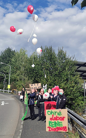 Gummersbach - Protestaktion am Krankenhaus Gummersbach vor den Tarifverhandlungen der IG BCE mit dem Laborbetreiber SNYLAB.