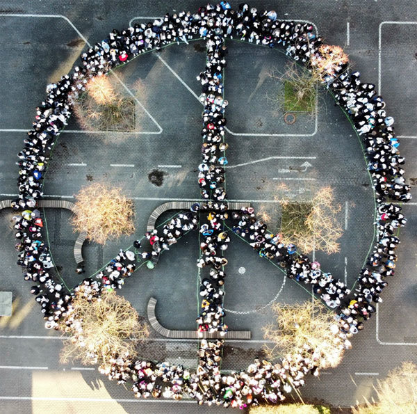 Schüler und Lehrer der Sekundarschule Wiehl haben im Unterricht den Ukraine-Krieg thematisiert und ein beeindruckendes Friedenszeichen gesetzt. "Einige Kinder haben Verwandtschaft in den betroffenen Gebieten und einige Kinder kennen Flucht und Vertreibung aus eigener Erfahrung", teilte die Schulleitung mit.