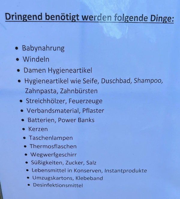 Weitere Informationen und eine Liste mit den benötigten Hilfsgütern gibt es unter diesem Facebook-Account.