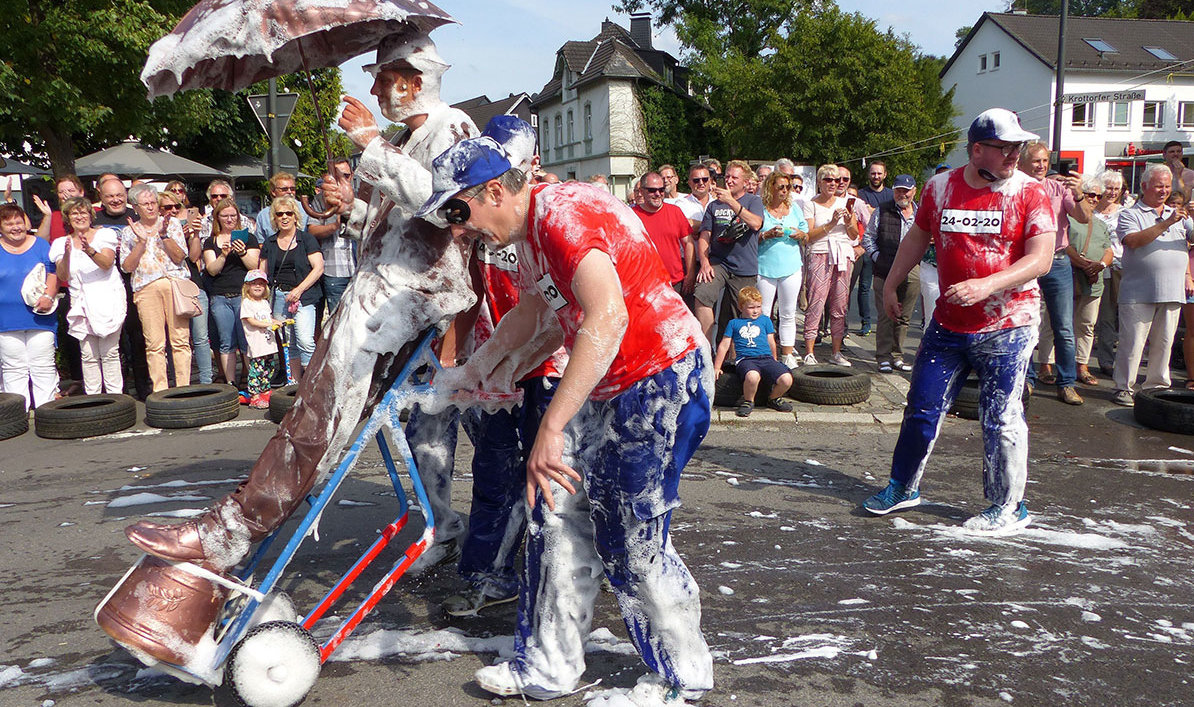 Zwei Jahre fiel das traditionelle Schubkarrenrennen in Morsbach aufgrund der Pandemie aus, nun kommt das Kultspektakel zurück. Der "Große Preis der Republik" findet Sonntag, 14. August, ab 16 Uhr auf dem Verkehrskreisel in der Ortsmitte statt. Veranstalter ist der Heimatverein, der in diesem Jahr 125 Jahre alt wird. Das erste Schubkarrenrennen fand 1960 in Morsbach statt. In den 1960er- und 1970er-Jahren wurden von wechselnden Organisatoren aber nur sporadisch zur Kirmes derartige Rennen ausgetragen. 1998 übernahm dann der Heimatverein Morsbach die Regie und richtete das Rennen von da an jährlich aus, auch nachdem die Kirmes wegfiel.