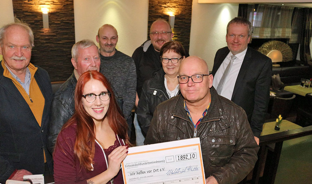 „Wir, die Administratoren der größten Waldbröler Facebook-Gruppe ‚Waldbröl-Mitte‘, hatten im Dezember 2019 bereits zum zweiten Mal nach dem großen Erfolg im Jahr 2018 zum ‚Waldbröl-Mitte-Spendenmarathon‘ aufgerufen“, erläutert Markus Disselkamp, einer der Administratoren von Waldbröl-Mitte. Vom 1. bis 23. Dezember wurden 14 Spardosen in zahlreichen Waldbröler Geschäften aufgestellt, was viele Kunden dazu bewegte, an der Sammlung teilzunehmen. Zunächst wurde innerhalb der Gruppe abgestimmt, wem der Erlös zu Gute kommen sollte. Die Wahl fiel auf den Waldbröler Verein „Wir helfen vor Ort". „Wir freuen uns, dass wir diesmal insgesamt 1892,10 Euro an Spenden sammeln konnten, die wir heute dem Waldbröler Verein ‚Wir helfen vor Ort‘ übergeben möchten“, erklärte das Admin-Team der Facebook-Gruppe. Die symbolische Spendenscheckübergabe fand gestern im Eiscafé & Bistro Pfeil in Waldbröl statt.