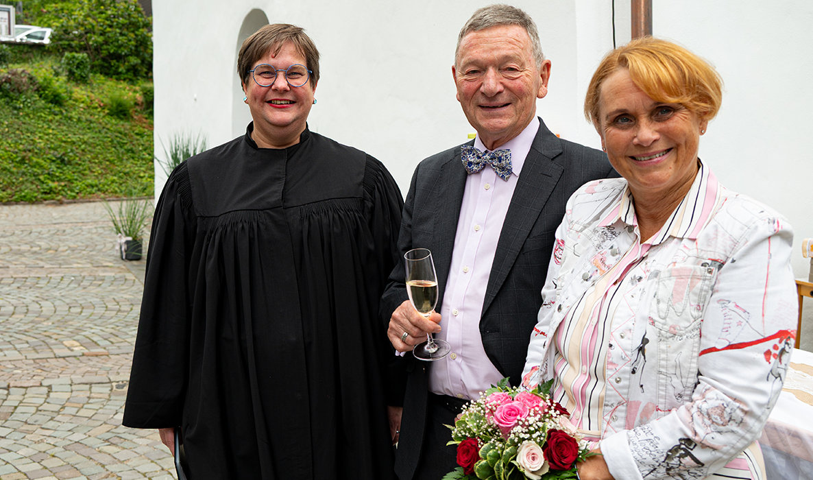 [Iris und Hartmut sind seit 46 Jahren verheiratet und genossen sichtlich diesen besonderen Tag, an dem sie ihre Ehe nochmals segnen ließen.]