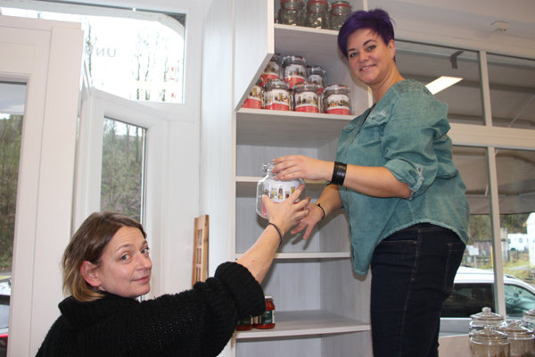 [Heidi Weber (li.) und Nikol Reifenrath sind Teil des Teams und helfen beim Einräumen der Waren mit.]