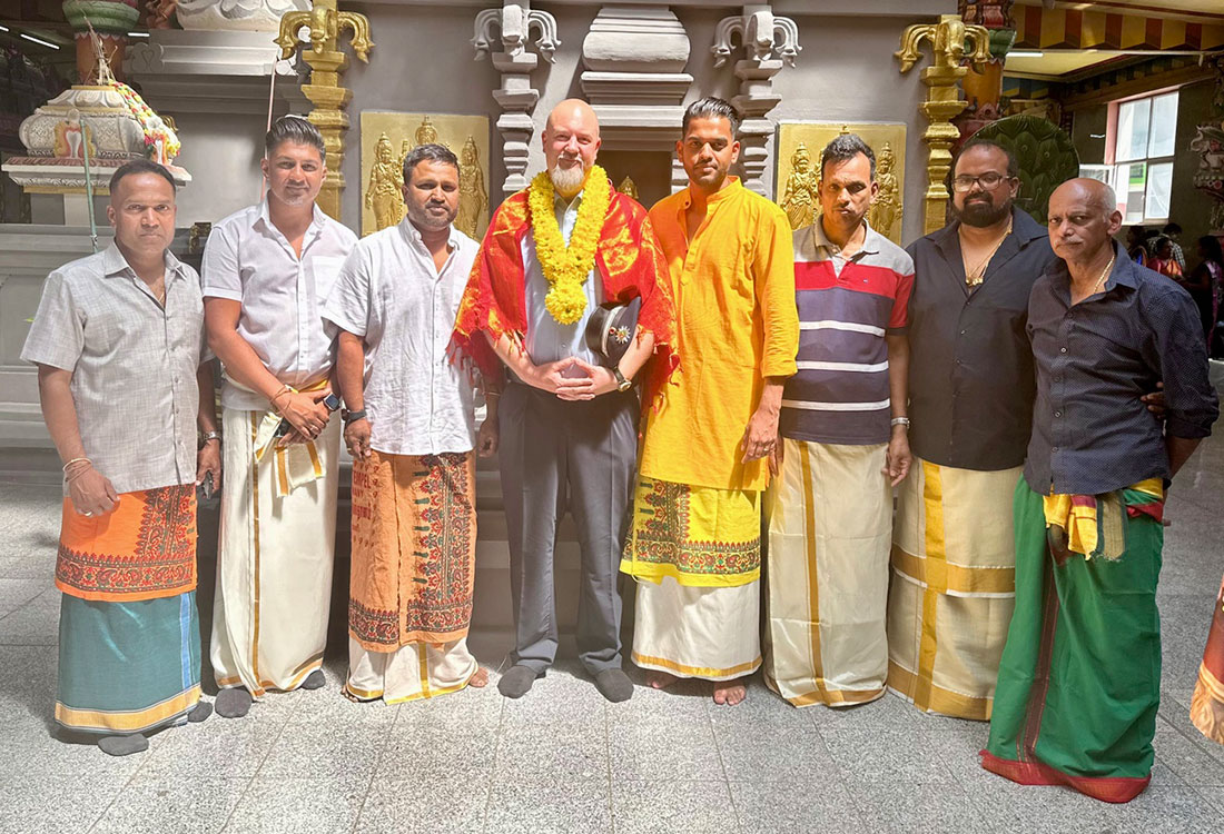 interreligiöse Angelegenheiten der Kreispolizeibehörde Oberbergischer Kreis, als Ehrengast. Zur Würdigung seiner kontinuierlichen Unterstützung wurde Schulmeistrat laut Mitteilung mit einer Blumengirlande und einem Ponnadai (Ehrenschal) ausgezeichnet – ein traditionelles Zeichen des