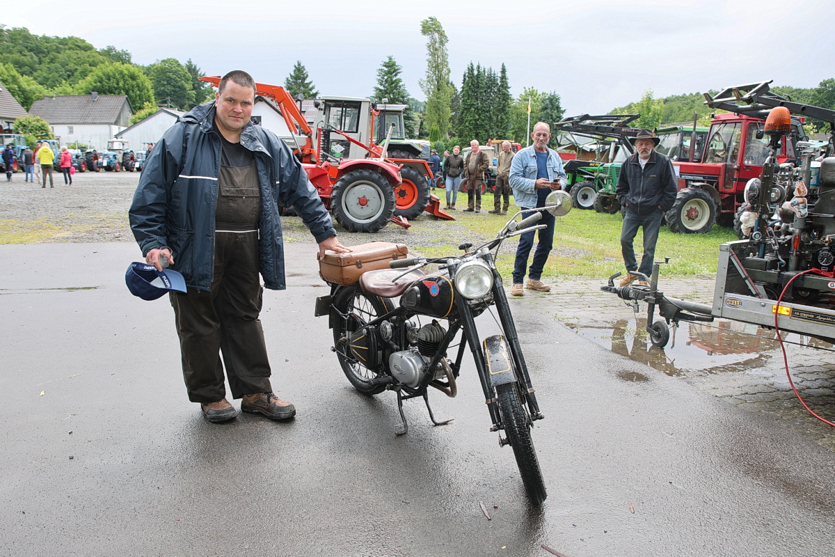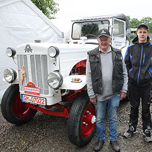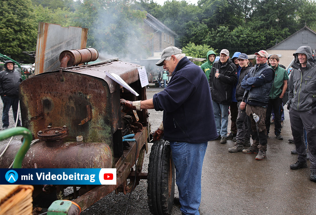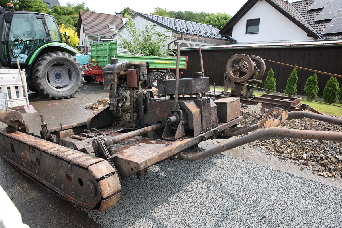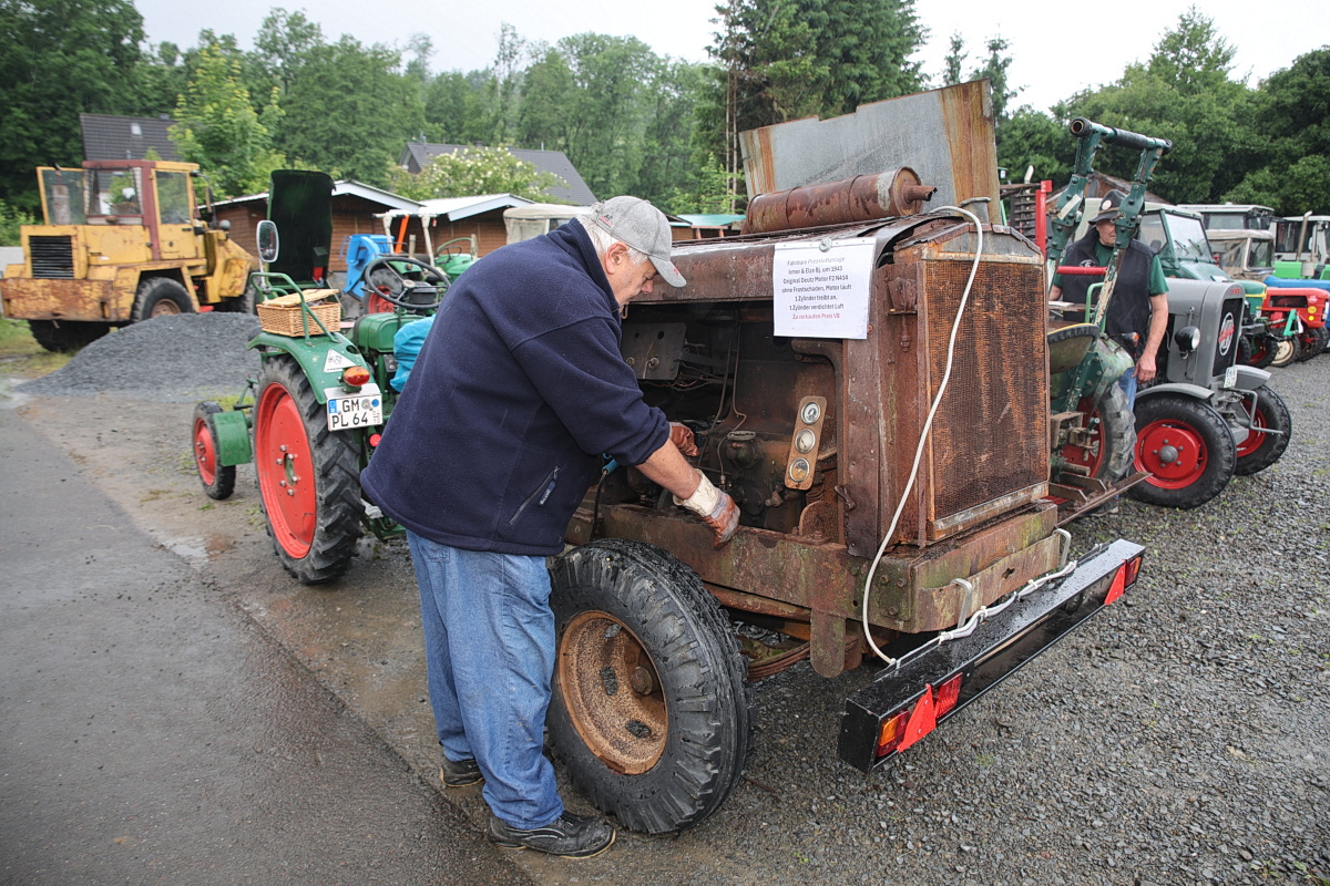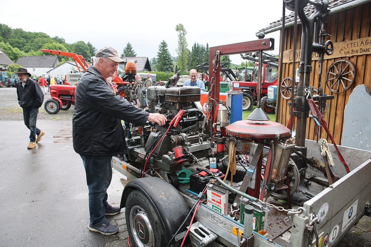Auch technisch Interessierte kamen auf ihre Kosten: So stellte Jürgen Klingenspor aus Strombach seinen Hanomag ATK von 1962 mit 60 PS aus – ein Fahrzeug, das nur noch zu Hobbyzwecken bewegt wird. Reiner Steup zeigte einen Farymann-Verdampfermotor aus dem Jahr 1948, der früher auf Bauernhöfen Kreissägen oder Betonmischer antrieb. Und Bernd Blumenberg präsentierte stolz eine fahrbare Pressluftanlage aus den 1940er/50er Jahren der Firma Irmer & Elze – mit originalem Deutzmotor und in bemerkenswert gutem Zustand. „Ohne Frostschaden – das ist wirklich selten“, so Blumenberg. Das Gerät ist ein Erbstück seines Vaters, der einst eine kleine Straßenbaufirma betrieb.