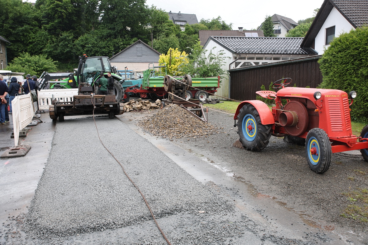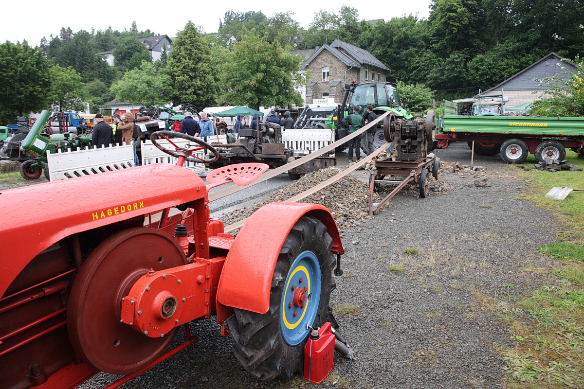 Ein echter Publikumsmagnet war der historische Steinbrecher, der über einen Trecker per Riemen angetrieben wurde – wie in den 1920er Jahren. Vor den Augen der staunenden Besucher zerkleinerte die alte Maschine große Steine für den Straßenbau. „So hat man früher kleinere Körnungen hergestellt“, erklärte Dick. Vorgeführt wurde das imposante Gerät vom Trecker Club Müllenbach, der seine historischen Schätze wie viele andere Teilnehmer präsentierte.