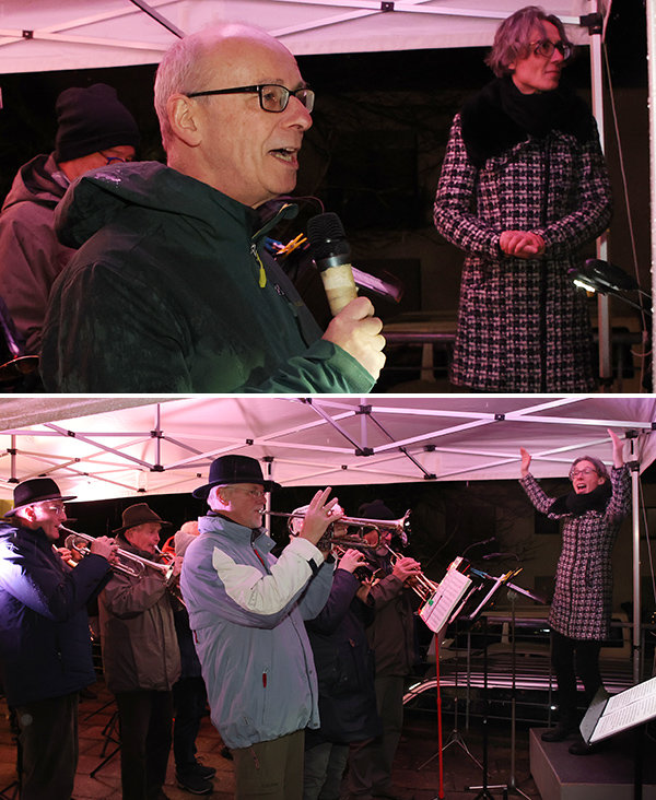 Pfarrer Dietrich Schüttler stimmte die Gäste auf das Weihnachtsfest ein. „Wir leben in unbeständigen Zeiten, aber die Musik bleibt und die freudige Nachricht steht, dass in Jesus Christus Gottes Liebe unter uns erschienen ist. Darum lassen wir es uns in diesen aufregenden Zeiten voller Wandel nicht nehmen, zum traditionellen Turmblasen vor der Altstadtkirche zusammenzukommen.“