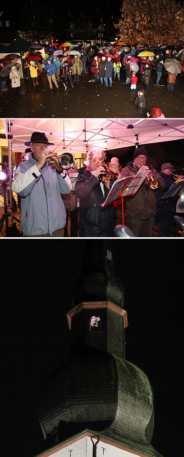 Bei Glühwein und Apfelpunsch luden am Samstag die Evangelische Kirchengemeinde Bergneustadt und der CVJM zum traditionellen Turmblasen in die Altstadt ein. Auf dem Kirchplatz hatten sich trotz Schmuddelwetter viele Bürger versammelt, um den Vorabend zum zweiten Advent mit Familie, Nachbarn und Freunden zu verbringen.