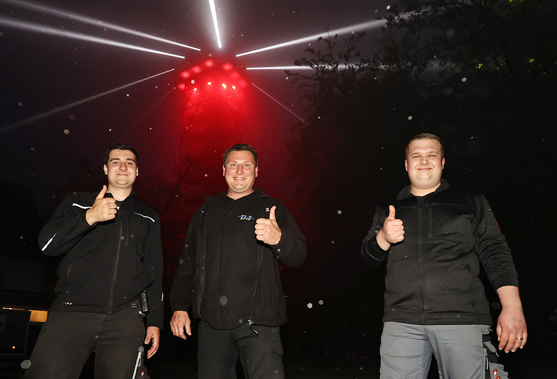 „Wir haben Lust, mal wieder was zu machen“, begründete Veranstaltungstechniker Olaf Hinze von „DJ Hinz & Kunz“ aus Marienheide-Müllenbach die Aktion. „Wir möchten die Event-Branche mal ein bisschen wachzurütteln. Wenn die Inzidenz noch weiter sinkt, kann man sicher wieder einiges mehr auf die Beine stellen“, meinte Hinze. Bei der Umsetzung seiner Idee, den Unnenberger Turm „zum Strahlen“ zu bringen, unterstützten ihn Lichttechniker Christian Röhrich sowie Fotograf und Multimediaspezialist Niklas Lomberg. „Das ist hier heute schon mal ein guter Anfang“, so Hinzes Fazit.