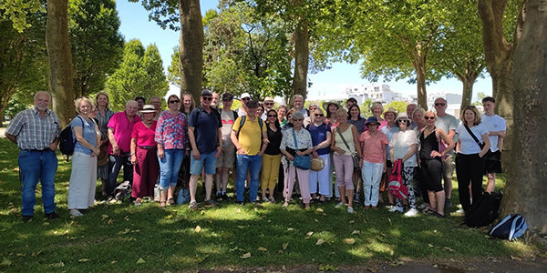 Viele nutzten bereits das Sommerwetter am Donnerstagnachmittag, um mit ihren Gastgebern an nahegelegene Strände des Atlantiks zu fahren. Auch der gemeinsame Tagesausflug am Freitag führte ans Meer: vormittags wurden die Regulus-Grotten in Meschers-sur-Gironde besichtigt und nachmittags konnte der Badeort Royan auf eigene Faust erkundet werden. „Bei bis zu 32 Grad brachte auch hier ein Sprung in den Atlantik eine willkommene Abkühlung“, schreibt Dirk Osberghaus, Vorstandsmitglied des Partnerschaftskomitees.