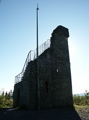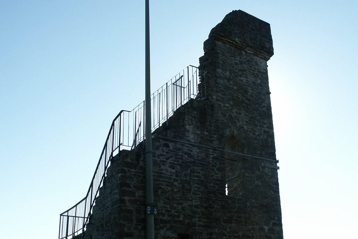 Der Aussichtsturm Ruine Meerhardtfels in Gummersbach-Dieringhausen gehört eigentlich zu den idyllischsten Plätzen im Oberbergischen. Von der Anhöhe Meerhardt bietet sich ein fantastischer Ausblick auf Dieringhausen und das Aggertal. Der 1908 in Gestalt einer künstlichen Ruine errichtete Turm ist aber mittlerweile seit drei Jahren das Ziel von Vandalismus. Im April 2017 hatte der für die Sicherheit verantwortliche gemeinnützige Verein Dieringhausen-Vollmerhausen beschlossen, das Bauwerk für die Öffentlichkeit zu sperren, nachdem Unbekannte das Geländer auf dem Turm stark beschädigt hatten: Die Absperrungen wurden unter großem Krafteinsatz verbogen, zudem wurden vermutlich mit Hammer und Meißel die Verstrebungen aus dem Mauerwerk teilweise herausgeschlagen.