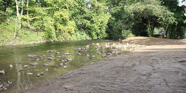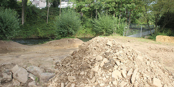 Dort wurden auf den 500 Metern Fließstrecke zwischen Wheelpark und Bahnhofstraße die Ufer schon an diversen Stellen von Befestigungssteinen befreit, abgeflacht und es sind – da in Absprache mit dem Nabu so viele Bäume wie möglich erhalten bleiben sollen – einige Inseln entstanden. Die Pflanzen und Bäume sorgen dort für Stabilität. In den vergangenen Tagen wurde bereits neues, natürliches Flusssediment in die entstandenen Abschnitte eingebracht und mit Steinen weiter befestigt. Die Ufer werden noch begrünt und mit Initialpflanzungen heimischer Auengehölze versehen. Wert legt Projektleiterin Hünninghaus auf Natürlichkeit. Der Fluss werde Ufer und Insel noch weiter formen.