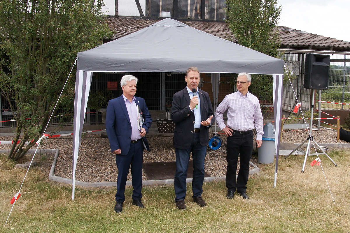 Landrat Jochen Hagt lobte in seiner Festrede das ehrenamtliche Engagement der Mitarbeiter, die sich für die Tiere einsetzen. Der Oberbergische Kreis unterstützt das Tierheim pro Jahr mit 20.000 Euro. Hagt ist, wie er selbst betonte, „ein Fan des Tierheims“. Dr. Georg Ludwig, Bürgermeister der Gemeinde Lindlar, hat selbst zwei Katzen aus dem Tierheim in Wipperfürth. Er findet, dass Haustiere zum Familienleben gehören. Dennoch habe die Tierhaltung auch Schattenseiten, und diese kämen dann im Tierheim an. Lothar Palubitzki, stellvertretender Bürgermeister in Wipperfürth, gratulierte zum Jubiläum und überreichte neben einem Geldgeschenk eine historische Lithografie von Wipperfürth.