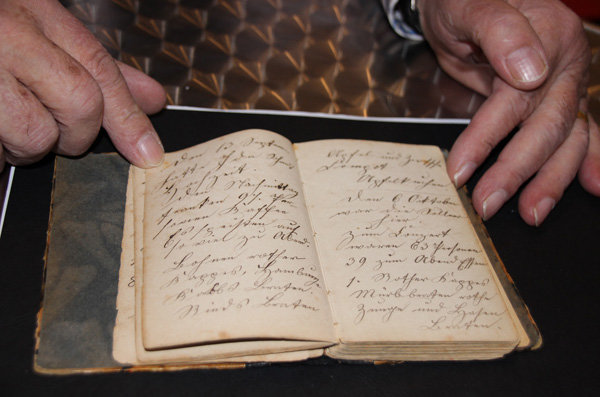 „Zu damaligen Zeiten, so eine große Gesellschaft auf Kohleherden zu bekochen, war schon eine Leistung“, bemerkte Dieter Forst gestern, als er sein Werk im Baumhof, in dem sich seit 2015 die Alternative Tagespflege Uwe Söhnchen befindet, vorstellte. Elisabeth und Harald Klinkert, vom BGV-Oberberg, haben zu ihrer Hochzeit am 16. Dezember 1972 ebenfalls im Gasthof Baumhof mit ihren Gästen gespeist. Sie haben aus dieser Zeit noch ihren originalen Menüplan der Gaststätte, aber schon nicht mehr handschriftlich. Mit Fotos der Seiten des historischen Notizbuches und der Übersetzung kann das Werk von Dieter Forst beim Heimatverein Ründeroth ausgeliehen werden.